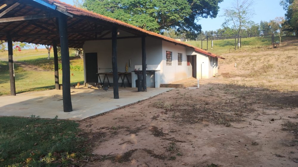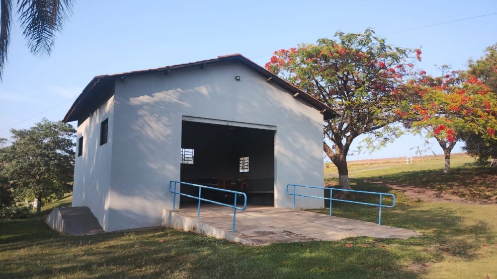 01 casa de funcionário (pendente de reforma) com 2 quartos, sala, cozinha, banheiro e garagem coberta. 01 Oficina, 01 barracão fechado para guardar equipamentos agrícolas e insumos.
