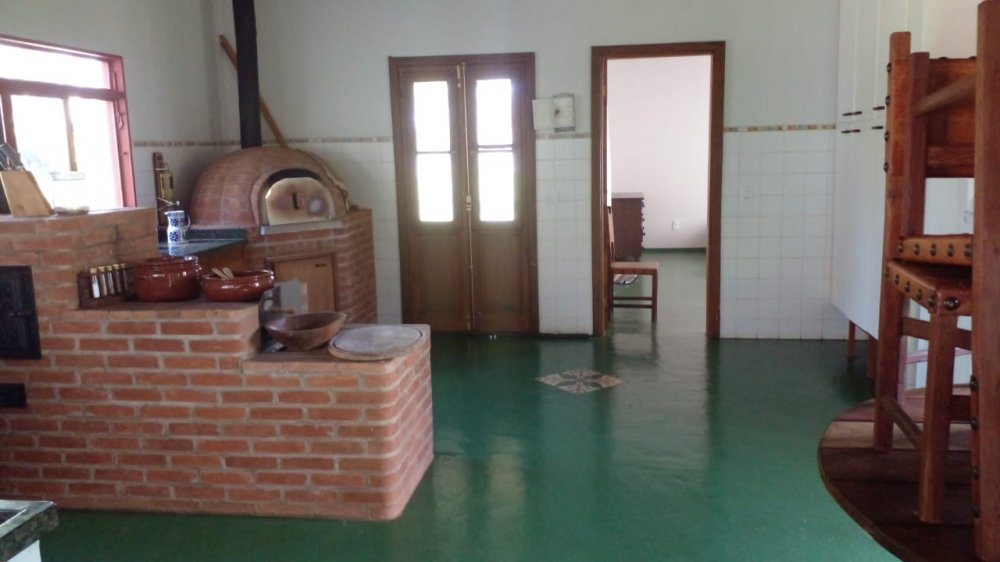 01 casa sede estilo rústico com varanda em "L" contendo 3 quartos (suites), quarto principal com closet, escritório, sala 2 ambientes, banheiro social, cozinha com fogão a lenha e forno de pizza, ampla lavanderia interna, jardim de inverno.