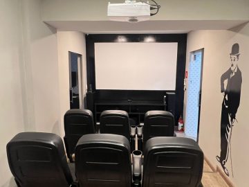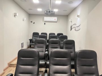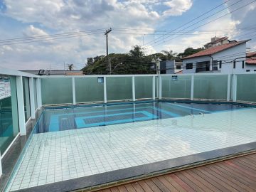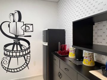O condomínio conta com piscina, portaria 24 horas, cinema privativo e salão de festas;